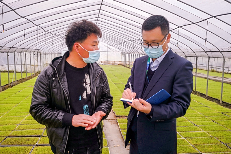 为保障春耕生产资金需求,浙江农信辖内苍南农商银行统筹安排5亿元专项信贷资金,发动全行216名共同富裕金融专员,为农户播撒金融春雨。截至目前,该行已向1332户农户、新型农业经营主体等授信2.7亿元,有力支持了当地春耕生产。图为该行共同富裕金融专员走访水稻种植大户,了解其资金需求情况。 本报记者 刘志良 通讯员 王美子 摄