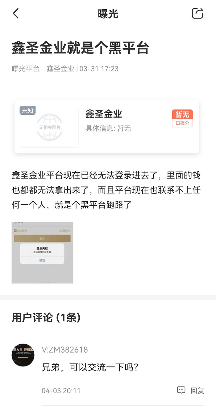 在网上搜索“鑫圣金业”,能找到不少类似投诉。