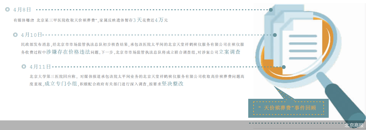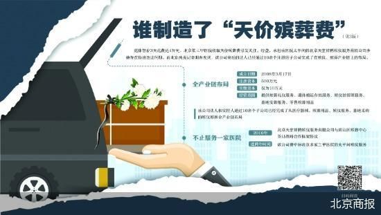 遗体暂存3天花费近4万,“天价殡葬费”事件引发关注。4月11日,北京大学第三医院发布了外包公司收取高价殡葬费相关情况的说明,称将高度重视承包医院太平间业务的北京天堂祥鹤殡仪服务有限公司收取高价殡葬费问题,成立专门小组,积极配合政府有关部门进行深入调查,按要求坚决整改。尽管如此,对该公司的质疑仍然不绝于耳。经北京商报记者调查发现,涉事公司已经通过10余个注册的子公司完成了在殡仪、殡葬产业链上的布局。