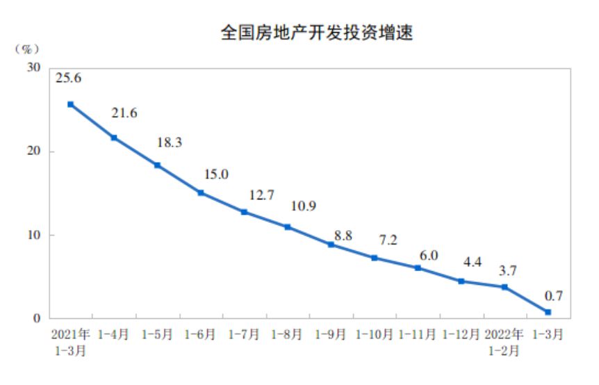 1—3月份,全国房地产开发投资27765亿元,同比增长0.7%;其中,住宅投资20761亿元,增长0.7%。