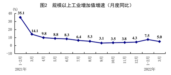 一季度,全国规模以上工业增加值同比增长6.5%。分三大门类看,采矿业增加值同比增长10.7%,制造业增长6.2%,电力、热力、燃气及水生产和供应业增长6.1%。高技术制造业、装备制造业增加值分别增长14.2%、8.1%,增速分别比规模以上工业快7.7、1.6个百分点。分经济类型看,国有控股企业增加值同比增长5.0%;股份制企业增长7.8%,外商及港澳台商投资企业增长2.1%;私营企业增长7.6%。分产品看,新能源汽车、太阳能(000591)电池、工业机器人产量分别增长140.8%、24.3%、10.2%。3月份,规模以上工业增加值同比增长5.0%,环比增长0.39%。3月份,制造业采购经理指数为49.5%,企业生产经营活动预期指数为55.7%。1-2月份,全国规模以上工业企业实现利润总额11576亿元,同比增长5.0%。
