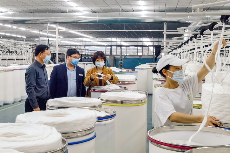 人行江西省奉新县支行投放人民银行再贷款9500万元,引导辖内金融机构精准支持复工复产的小微企业,为企业纾困解难。图为该行与当地农商行工作人员在恒昌棉纺织厂走访,了解企业复工生产及资金需求情况。