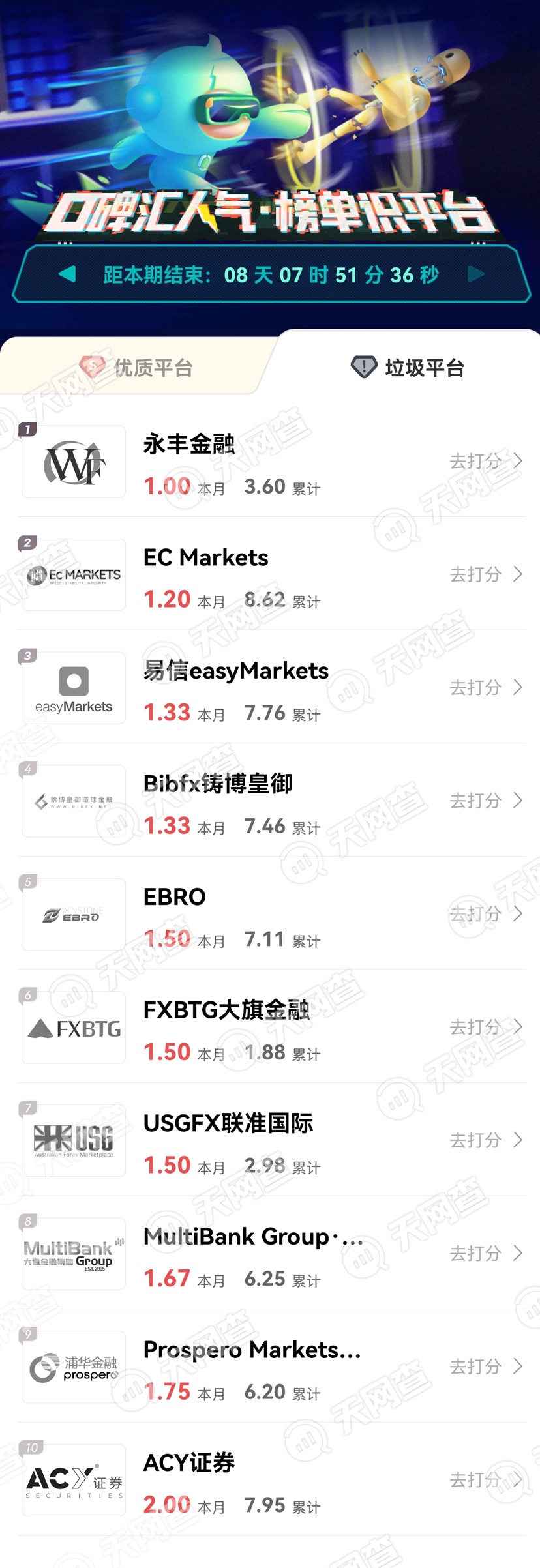 最新一期的交易商口碑榜已出炉,看看本期优质平台和垃圾平台各有谁呢?
