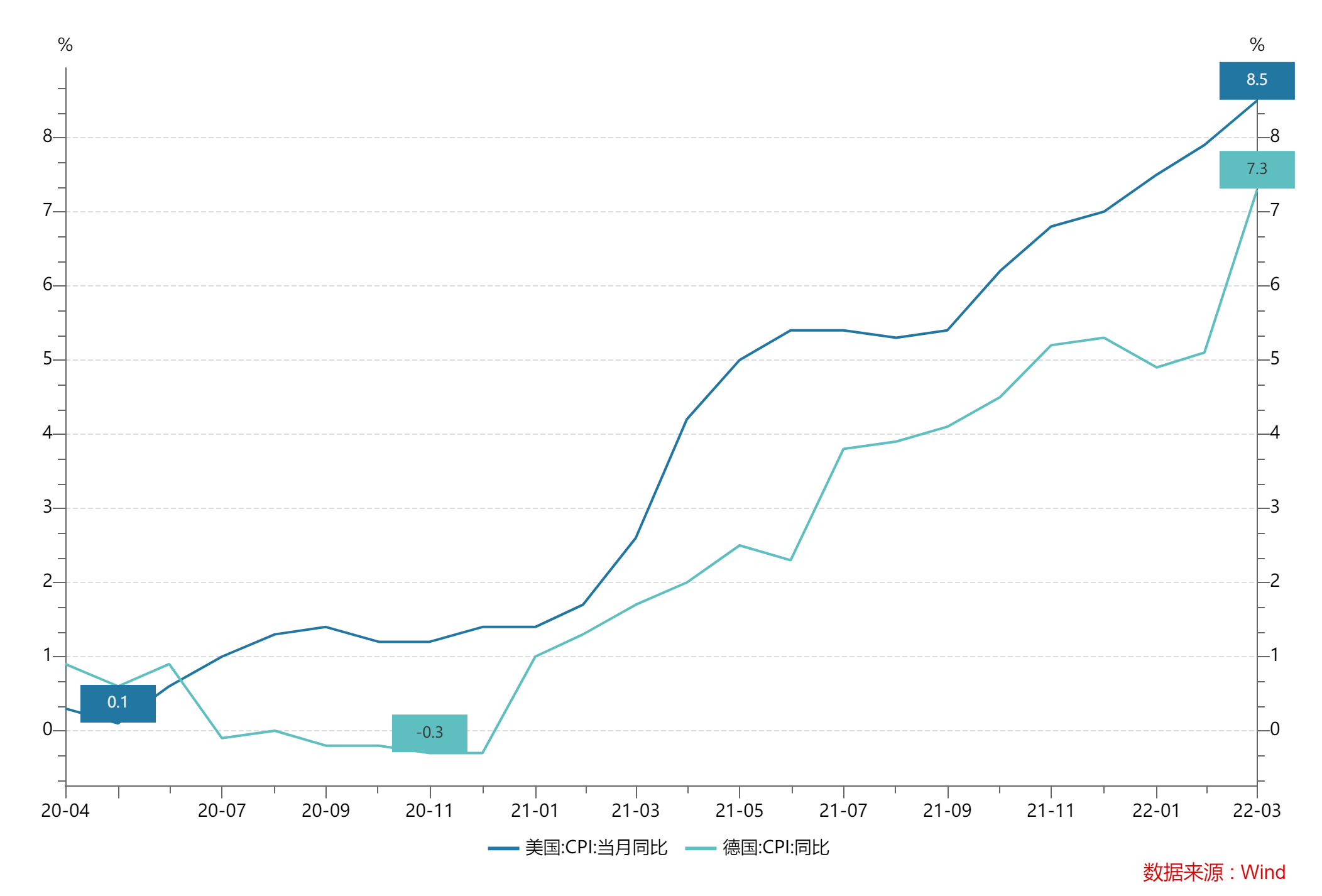 欧盟通胀水平现在是7.5%左右,这在欧盟历史上是非常高的,特别是德国,德国有二战以后通胀急剧膨胀的惨痛教训,但现在德国自身通胀水平也达到了7.3%。