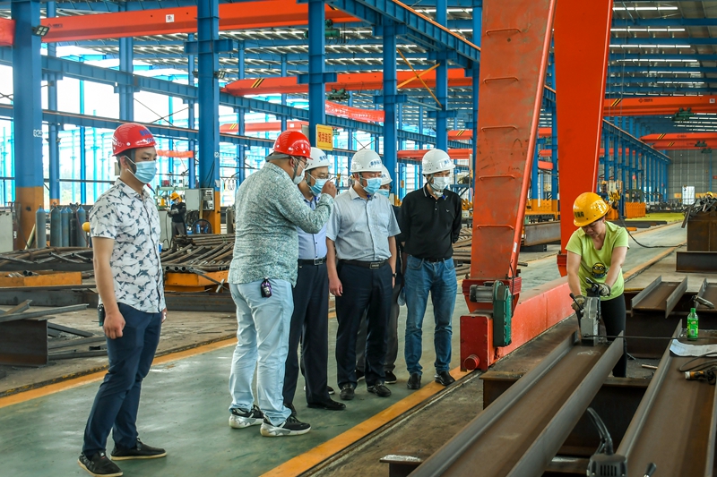 今年以来,人行江西崇仁县支行不断强化货币信贷政策指导,督促辖内银行业金融机构多措并举,全力满足企业复工复产金融需求。截至目前,崇仁县金融机构今年新增小微企业贷款达4.5亿元。图为该行与崇仁农商银行工作人员在江西崇创钢结构有限公司走访。 本报记者 刘志良 通讯员 吴羲 摄