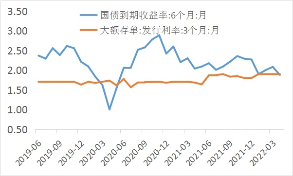 图:2019年以来国债收益率与大额存款利率