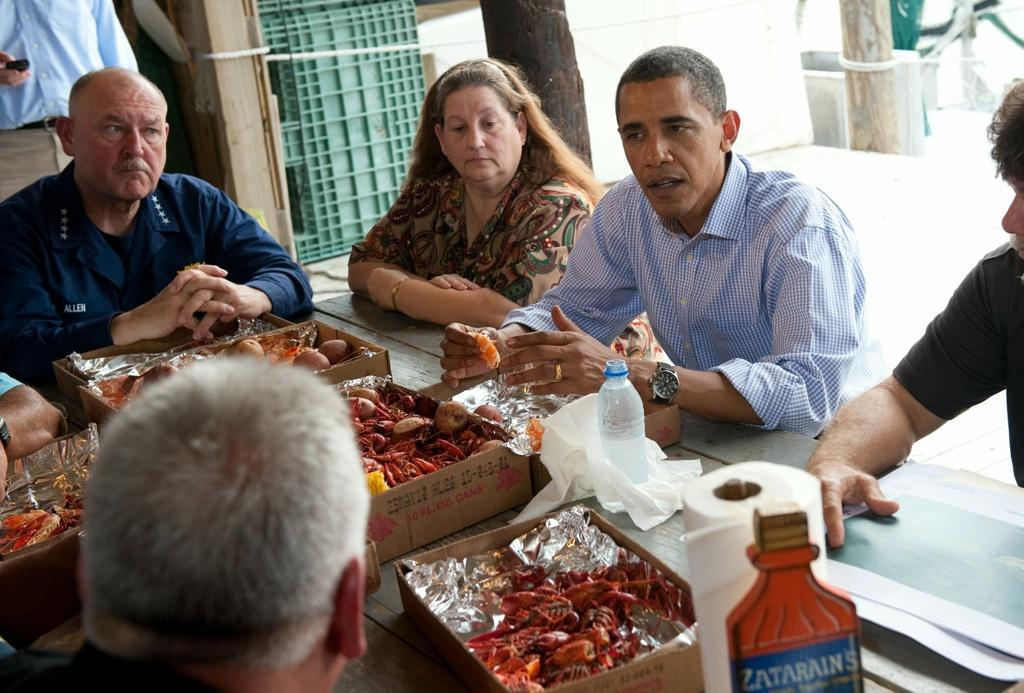 美国前总统奥巴马,也忍不住来一顿小龙虾当工作餐 图源:Getty Image