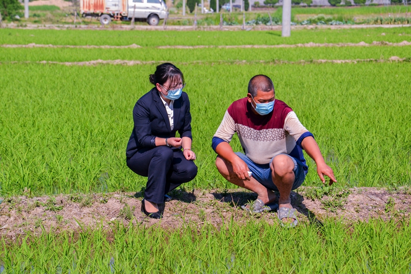 邮储银行浙江金华市分行运用数字化手段赋能农村信用体系建设,以信用村建设、信用户拓展为抓手,持续优化粮食贴息、生猪养殖等特色农业贷款,助力乡村振兴战略。截至一季度末,该行已评定信用村1894个、信用户约3.8万户,信用村小额贷款余额84亿元。图为该行客户经理在稻田了解水稻生长及金融需求情况。