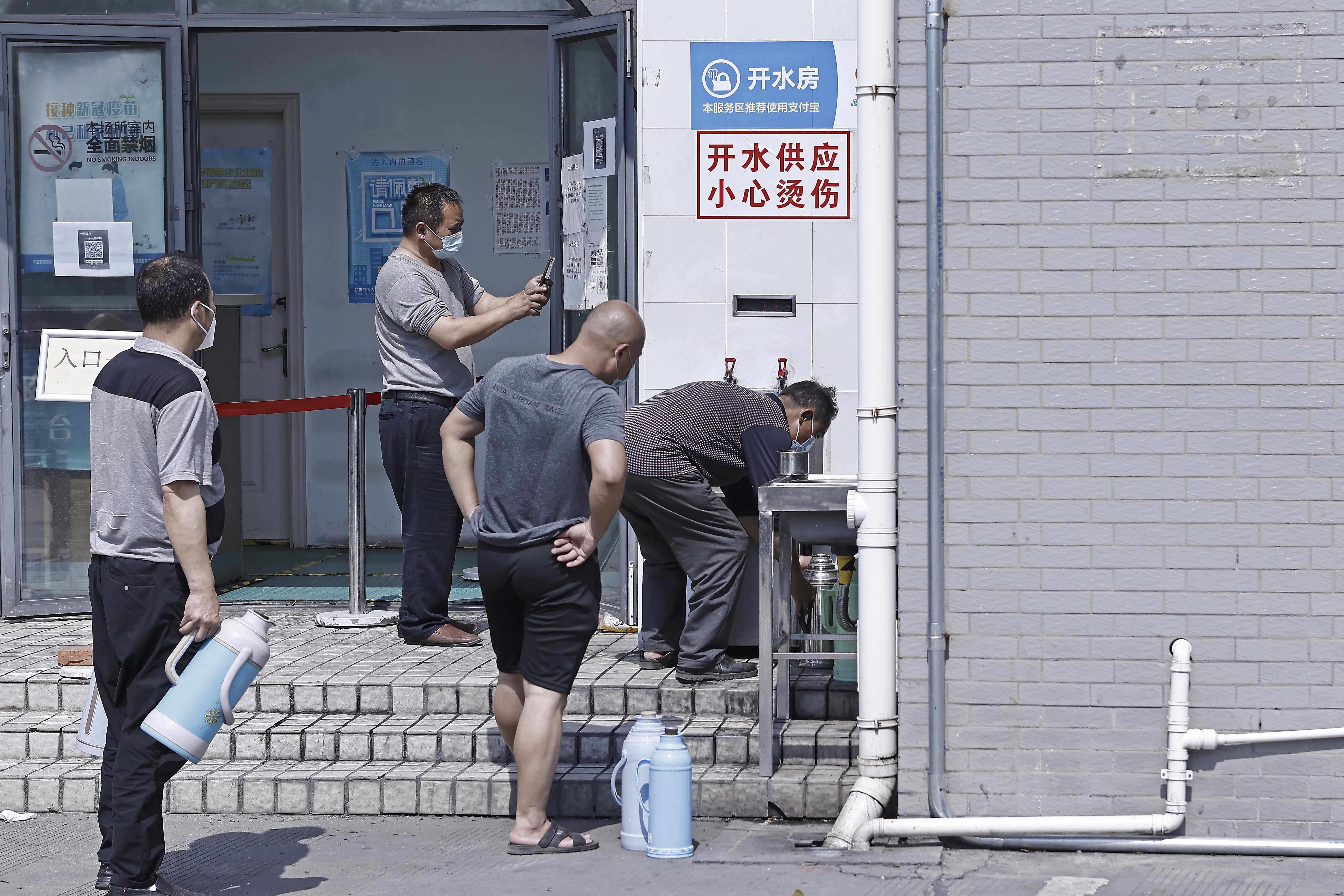 4月11日,上海,在G1503东环合庆服务区内,集卡车辆司机正在休息和补给。图/IC photo