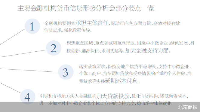 会议强调,金融系统要用好用足各种政策工具,从扩增量、稳存量两方面发力,以适度的信贷增长支持经济高质量发展。要聚焦重点区域、重点领域和重点行业,围绕中小微企业、绿色发展、科技创新、能源保供、水利基建等,加大金融支持力度。