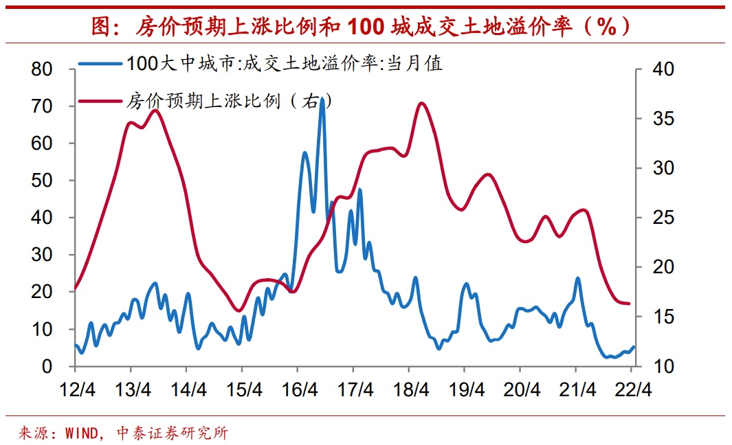 房价增速仍较稳定,结构升级或是主线。从房价的先行指标来看,能够反映房企对房价上涨预期的100城成交土地溢价率仍处在较低位,而一季度央行公布的城镇储户调查问卷中的“房价预期上涨比例”也延续下行,可见居民和企业对于房价上涨的预期均较弱。在政治局会议仍然强调坚持房住不炒定位的前提下,短期房价同比增速或将保持稳定态势,而地产结构升级或将成为本轮地产恢复的主要特点,这将带动居民实物资产重新回到增长通道。