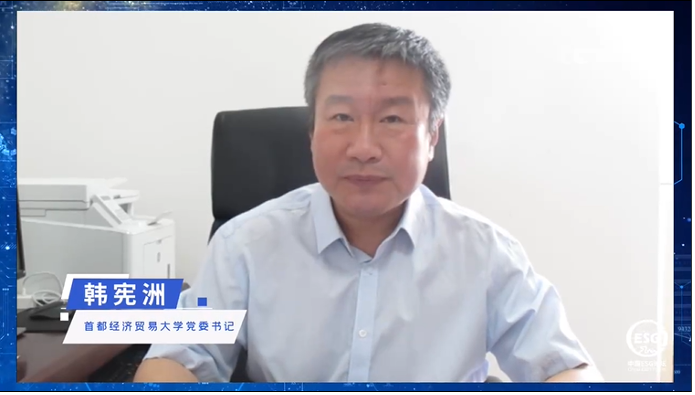 首都经济贸易大学党委书记韩宪洲、中国企业改革与发展研究会常务副会长许金华为论坛致辞。韩宪洲表示,本次论坛契合国家“十四五”规划和“双碳”战略要求,是首都经济贸易大学服务社会、主动回应国家战略需求的体现。首都经济贸易大学希望以ESG为抓手,以求真务实、开拓创新的科学理念为指导,积极参与国家“双碳”及绿色经济等政策标准的研究和制定,引导行业转型和商业实践,培养具有可持续发展理念、掌握低碳和ESG知识的创新型人才,为促进中国经济高质量发展和实现中华民族伟大复兴贡献力量。