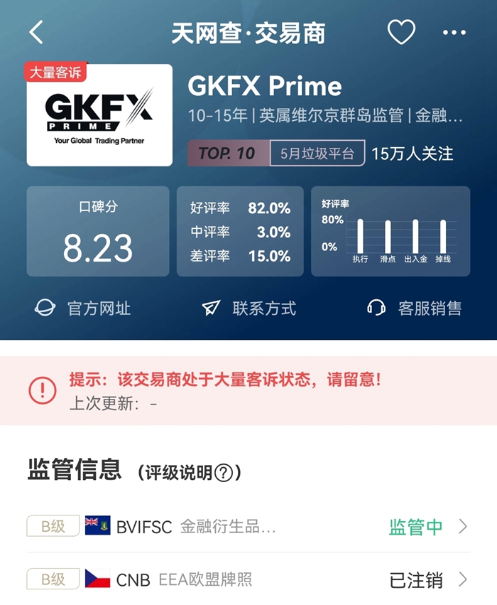 对于一个口碑下滑、客服质量无法跟上的交易平台,天网查建议用户谨慎再用GKFX捷凯交易,何必随时让自己有炮灰的风险呢。