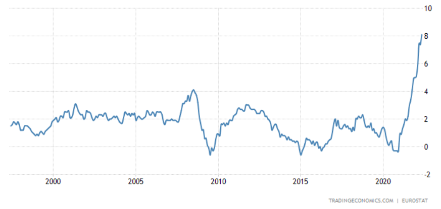 (欧元区CPI年率,来源:tradingeconomics、EUROSTAT)