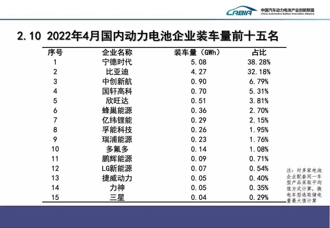 不久前,中国汽车动力电池产业创新联盟披露, 2022年4月,宁德时代装车量市场占比跌破40%,降至38.28%,不仅比亚迪(002594)追至32.18%,“黑马”中创新航也升至6.79%。