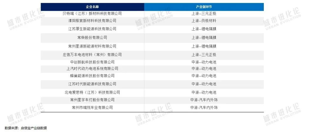 “常州的优势在于,工业装备和汽车零部件领域基础雄厚,为动力电池的生产提供了便利条件。”启信宝产业研究专家表示,当地政府通过注册孵化、精准招商等手段,在产业发展初期就布局了贝特瑞、中创新航、北汽新能源、星星充电等上下游配套企业,并积极搭建国家级企业技术中心等产业创新载体,形成了国内领先的新能源汽车产业集群。