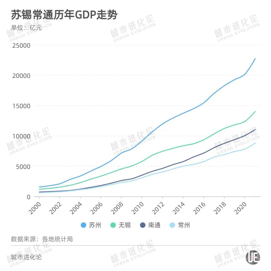 2020年,苏州、无锡GDP分别为20170.5亿元、12370.48亿元,一江之隔的南通也成功迈入“万亿俱乐部”,常州GDP则仅为7805.3亿元,“苏锡通”已然开始挑战“苏锡常”的经济格局。