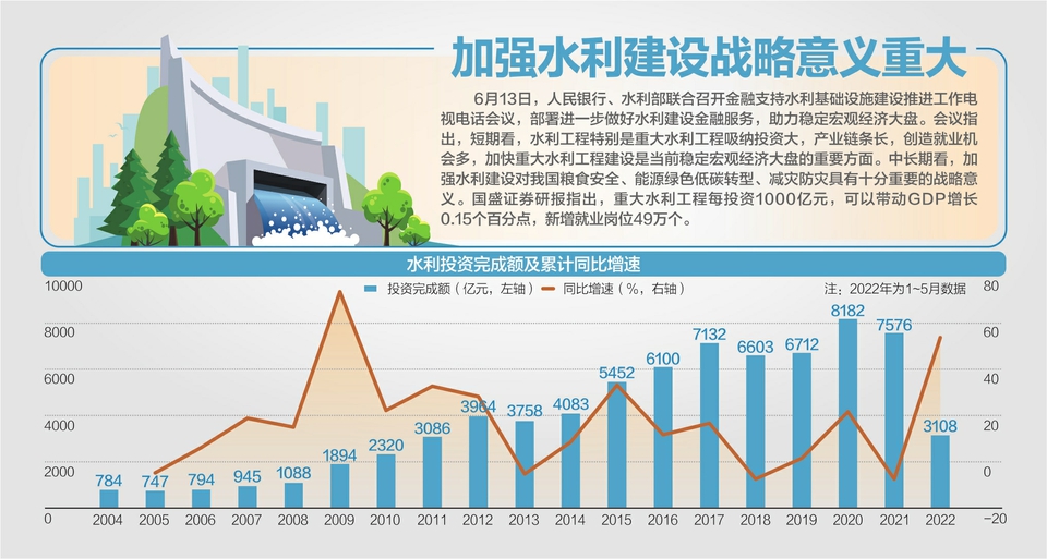 6月13日,央行、水利部联合召开金融支持水利基础设施建设推进工作电视电话会议,部署进一步做好水利建设金融服务,助力稳定宏观经济大盘。
