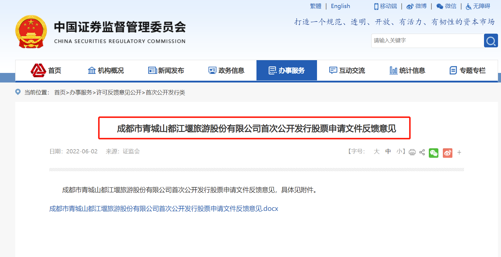 中华网财经6月14日讯,近日,证监会官网披露了成都市青城山都江堰旅游股份有限公司(以下简称“青都旅游”)首发反馈意见。公司拟在深市主板上市,拟募资3.46亿元。其中,0.3亿元用于青城前山光观车采购,2.2亿元用于“悟道青城”文化演艺综合项目,0.95亿元用于补充流动资金。