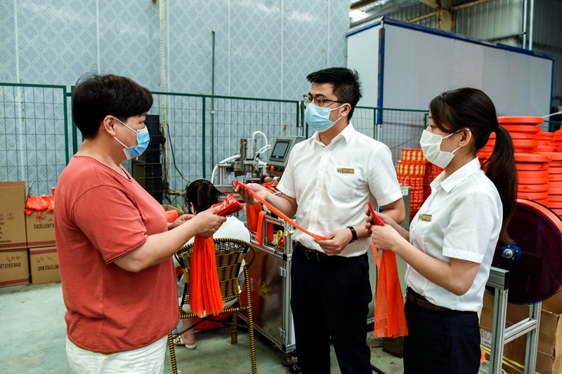 今年以来,江西南丰农商银行充分运用人民银行支小再贷款2.6亿元,着力服务辖内企业复工复产,帮助企业纾困解难,为地方经济发展提供了有力的金融保障。图为该行客户经理在宏灿塑料制品有限公司了解企业生产和资金使用情况。