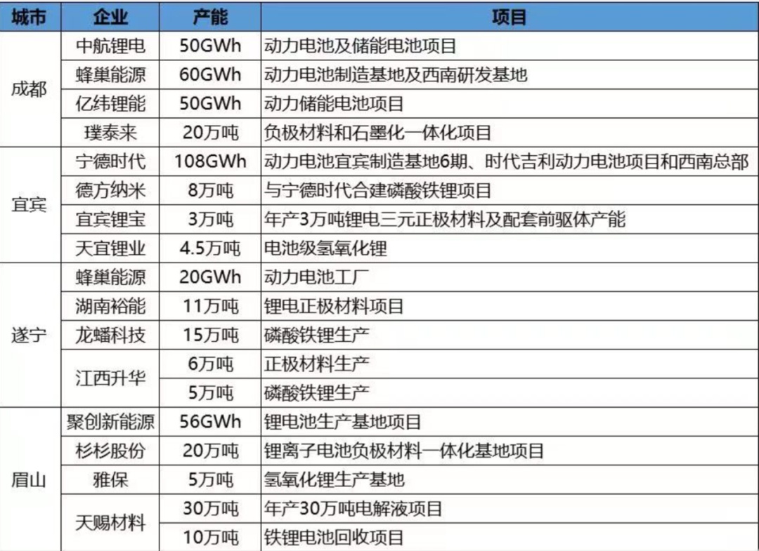 比如,宁德时代一口气落子了宜宾、成都、眉山;
