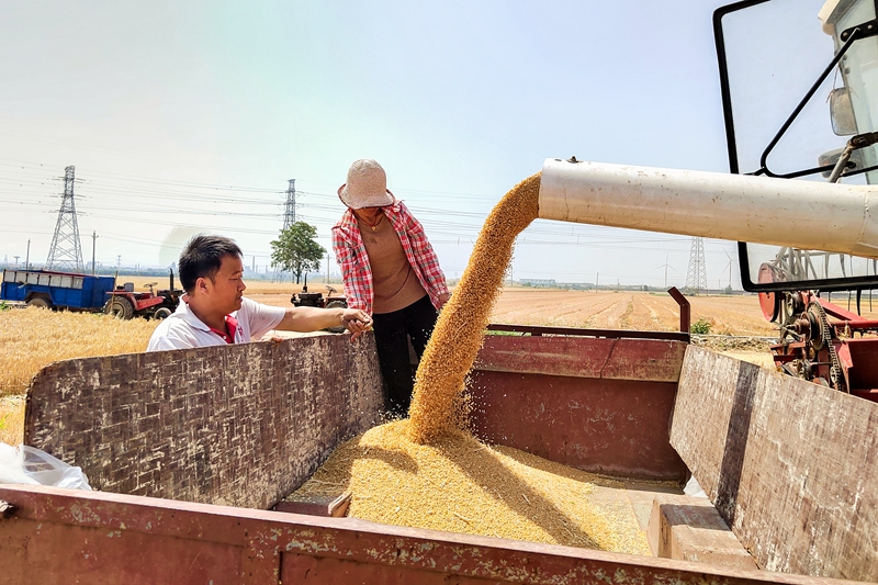 夏收期间,人行汤阴县支行多措并举,发挥支农支小再贷款调控作用,加强对涉农金融机构小麦收购资金筹措指导工作,确保农民丰产丰收。目前,该县为夏收配备的5.6亿元小麦收购资金已全部到位。图为汤阴县大江窑村小麦收割现场。