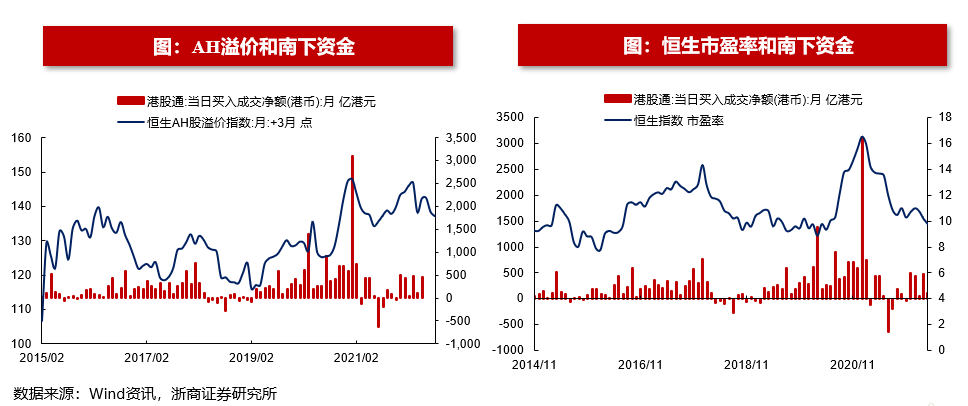浙商证券近日指出,南向资金近期加速流入港股有三个因素有关,分别是国内宏观经济向好、流动性环境明显改善、AH溢价高恒指估值低。