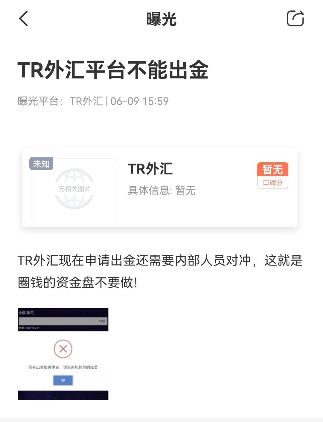 对TR外汇熟悉的汇友,一定知道这个平台时不时就会出来类似无法出金、疑似跑路的消息。