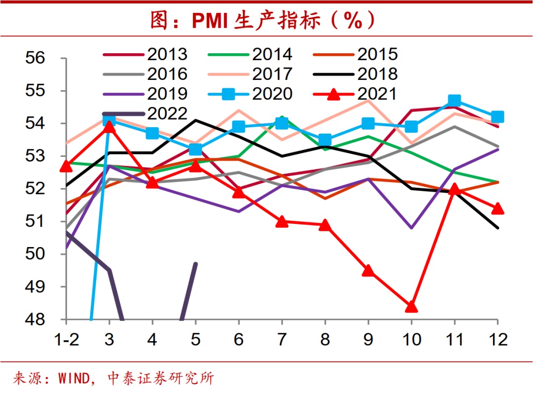 供需好转已经出现。此前疫情制约经济恢复和市场表现,而今国内疫情已经出现好转迹象。5月PMI仍在荣枯线下,但较4月录得显著回升,且上升幅度达到2.2个百分点,已经是2013年以来除武汉疫情时期的新高。从各分项来看,带动本月PMI反弹的主要力量在于生产,需要注意的是,新出口订单和往年同期水平已较为接近,这预示着出口短期很可能会趋于稳定。