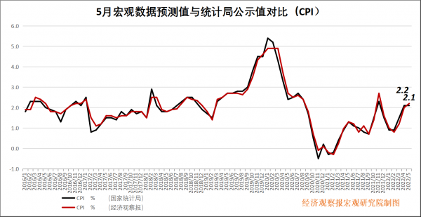 中邮证券宏观策略分析师魏大朋点评:5 月CPI 同比上涨 2.1%,与 4 月份持平,保持温和上涨趋势,其中食品价格上涨2.3%,非食品价格上涨 2.1%。CPI环比下降 0.2%,其中食品价格下降 1.3%,非食品价格上涨 0.1%。