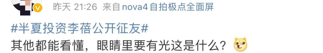 据了解,李蓓是国内知名宏观对冲私募基金经理,有着“私募魔女”之称,今年曾精准判断A股拐点。有人认为她的这篇征友贴行文坦率真诚,是真性情的表现;也有人认为,在自家公司官微发布此类个人信息并不妥当,存在炒作嫌疑。