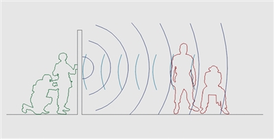 此款侦察雷达产品半个巴掌大小、0.3公斤重,4秒启动,利用多普勒效应和微波穿透非金属屏障的原理,可探测墙后物体的运动情况,并呈现在LED屏幕上。蓝灯亮,即说明墙后有物体在运动。