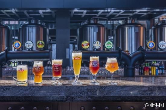 除1903精酿工坊,青岛啤酒·时光海岸精酿啤酒花园还汇聚度假酒店、威士忌俱乐部、啤酒SPA、创意烘焙、婚恋服务等时尚业态,将精酿啤酒生产、品鉴、美食、娱乐、演艺、互动、体验、NPC、自助打酒、旅游、婚庆、时尚IP等融为一体,让沉浸更“深一度”。