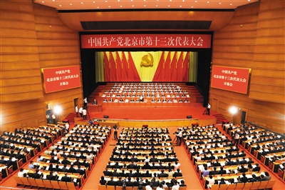 6月27日,中国共产党北京市第十三次代表大会开幕,蔡奇代表中共北京市第十二届委员会向大会作报告。新京报记者 侯少卿 摄