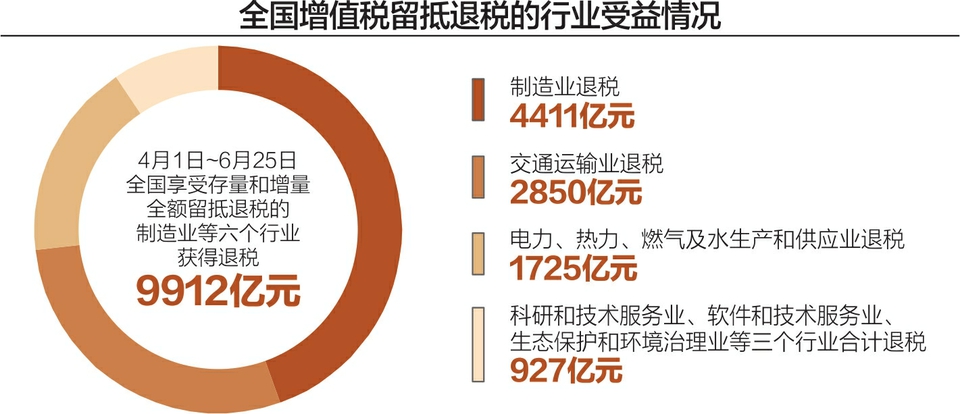 国家税务总局6月30日公布的最新数据显示,今年4月1日至6月25日,增值税留抵退税已有17033亿元退到纳税人账户。
