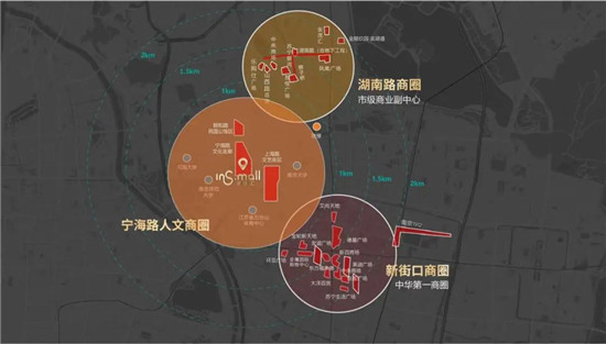 一流文教、一流文旅、一流产业,外加上千高质政企和数十万殷实的常住家庭人口,这些尖端资源都集结于宁海路人文商圈,不仅满足了INS.Mall银城汇半径1.5km范围内的常驻人群的场景式生活体验,对于弥补新街口、湖南路两大城市级商圈在地域级消费层面的空白上也具有重要意义。