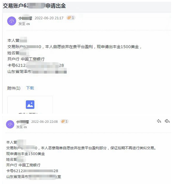 但到了第二天,曾先生的账户直接被封禁。6月20日,之前一直不正面回复账户问题的客户经理,电话要求曾先生发邮件承认自己违规交易,否则不但盈利无法提现,本金也不让取出。