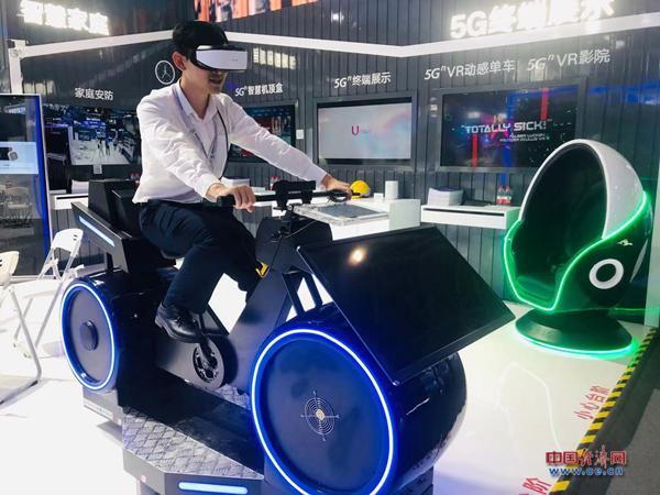 第四届数字中国建设峰会上,一名观众在体验基于5G技术的VR动感单车。中国经济网记者王婉莹/摄