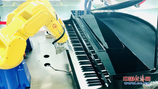 福建一家企业的工业机器人在演示弹奏钢琴。中国经济网记者王婉莹/摄