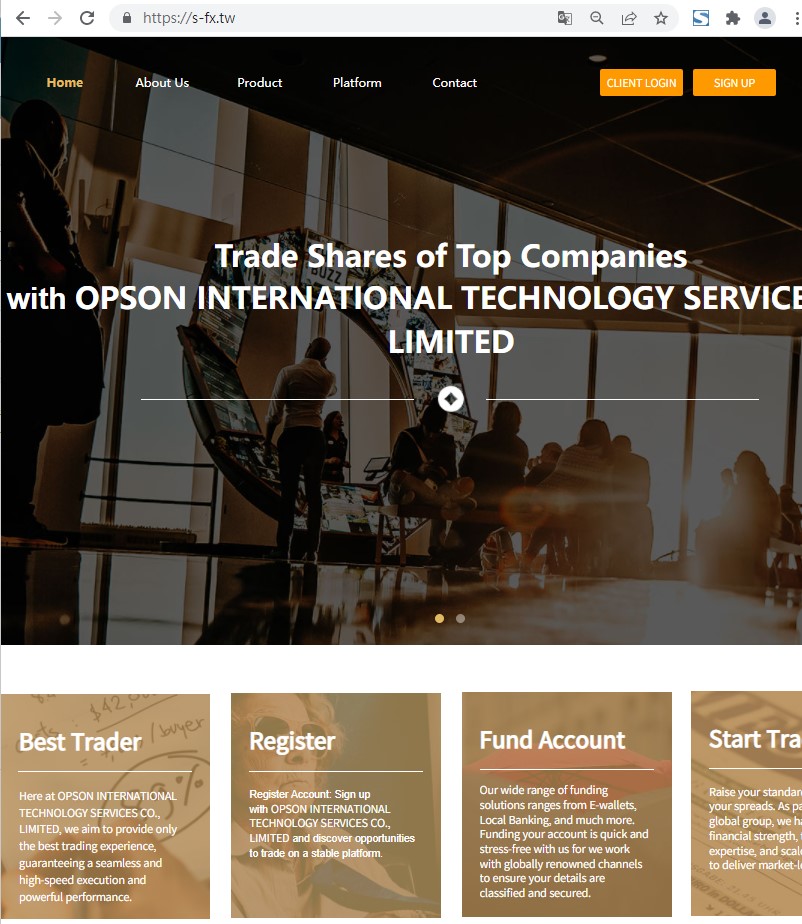 OPSON官网宣称平台属于“OPSONINTERNATIONAL TECHNOLOGY SERVICES CO., LIMITED”公司,供外汇、股指、商品、贵金属等交易服务。但平台偌大的官网上却没有公布OPSON持有哪些国家的监管牌照。