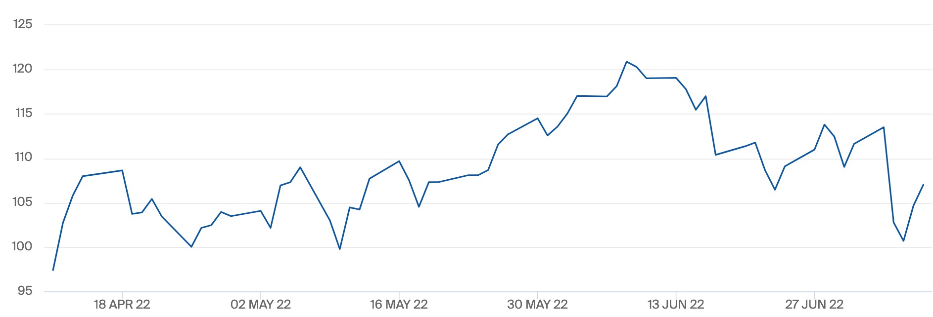 截至本周五收盘,纽约商品期货交易所8月交货的WTI原油期货报104.79美元/桶,伦敦洲际交易所布伦特9月交货的原油期货合约收于107.02美元/桶,日内涨幅均超2%。在围绕美国经济潜在衰退的忧虑中,本周初国际油价暴跌,其中作为全球原油定价两大基准布伦特和WTI原油7月5日单日最大跌幅均超过10%,一度跌破100美元/桶重要关口。