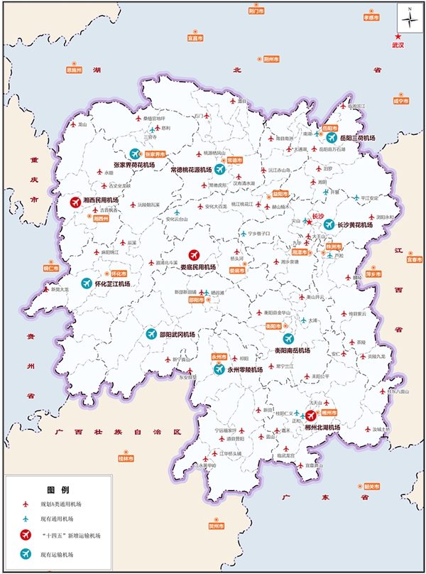 根据《湖南省通用机场布局规划(2021-2035年)》规划,到2035年,湖南将构建“1+13+N”通用机场网络格局,力争实现“县县有通用机场、乡乡有临时起降点”。