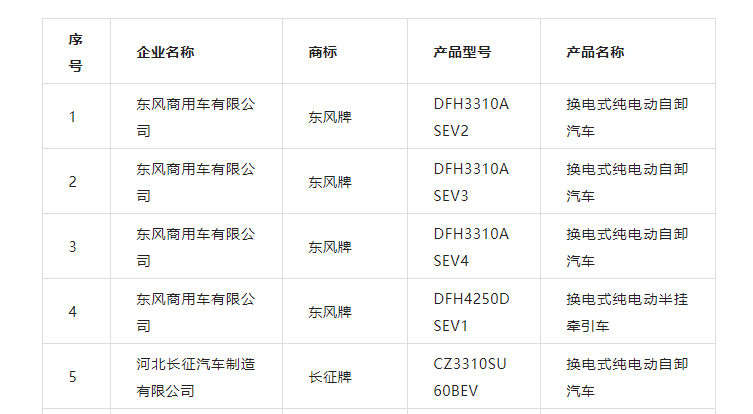 其中,换电车型共有40款。含自卸车14款(垃圾车1款)、半挂牵引车11款,混凝土搅拌车9款,牵引车3款,厢式运输车2款,轿车1款。