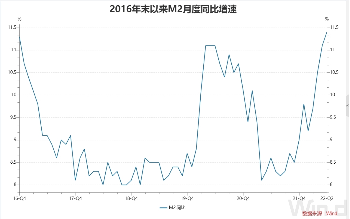 数据显示,6月末,广义货币(M2)、狭义货币(M1)同比分别增长11.4%、5.8%,增速分别比上月末高0.3个、1.2个百分点。