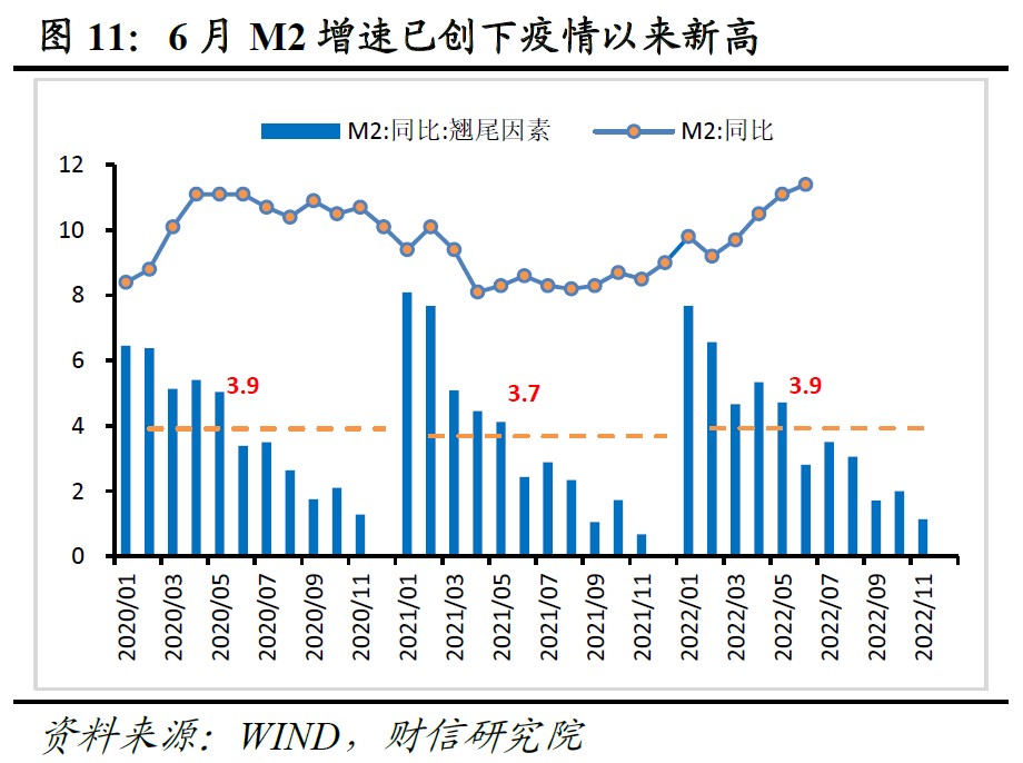 三、信贷财政扩张支撑M2增速继续走高,基数下降和房企资金改善助力M1增速回升