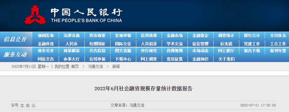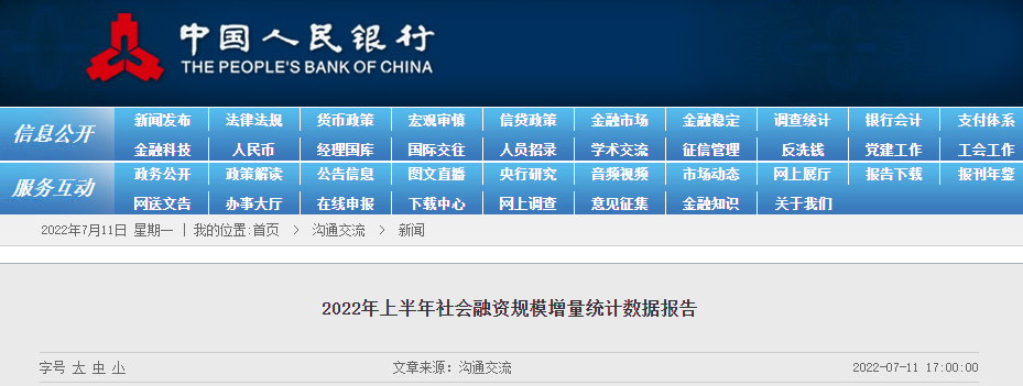 中国人民银行网站11日发布《2022年6月社会融资规模存量统计数据报告》和《2022年上半年社会融资规模增量统计数据报告》,经初步统计,6月末社会融资规模存量为334.27万亿元,同比增长10.8%,2022年上半年社会融资规模增量累计为21万亿元,比上年同期多3.2万亿元。