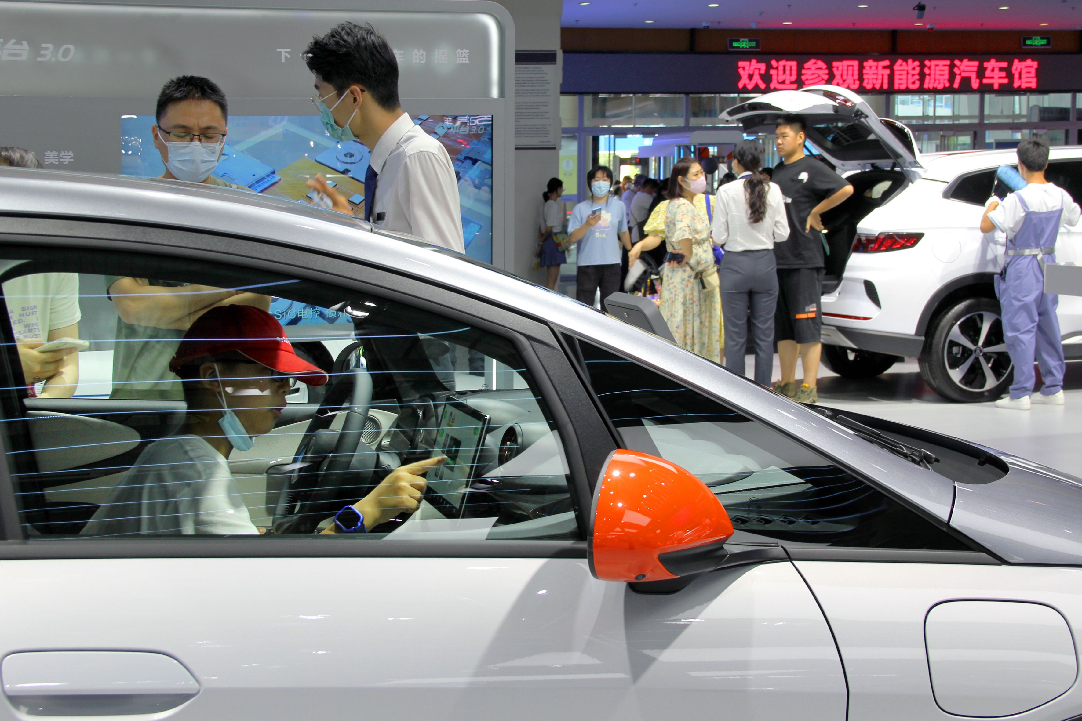 6月25日,南京车博会现场,新能源汽车备受青睐,不少市民在现场咨询、试驾新能源汽车。图/IC photo