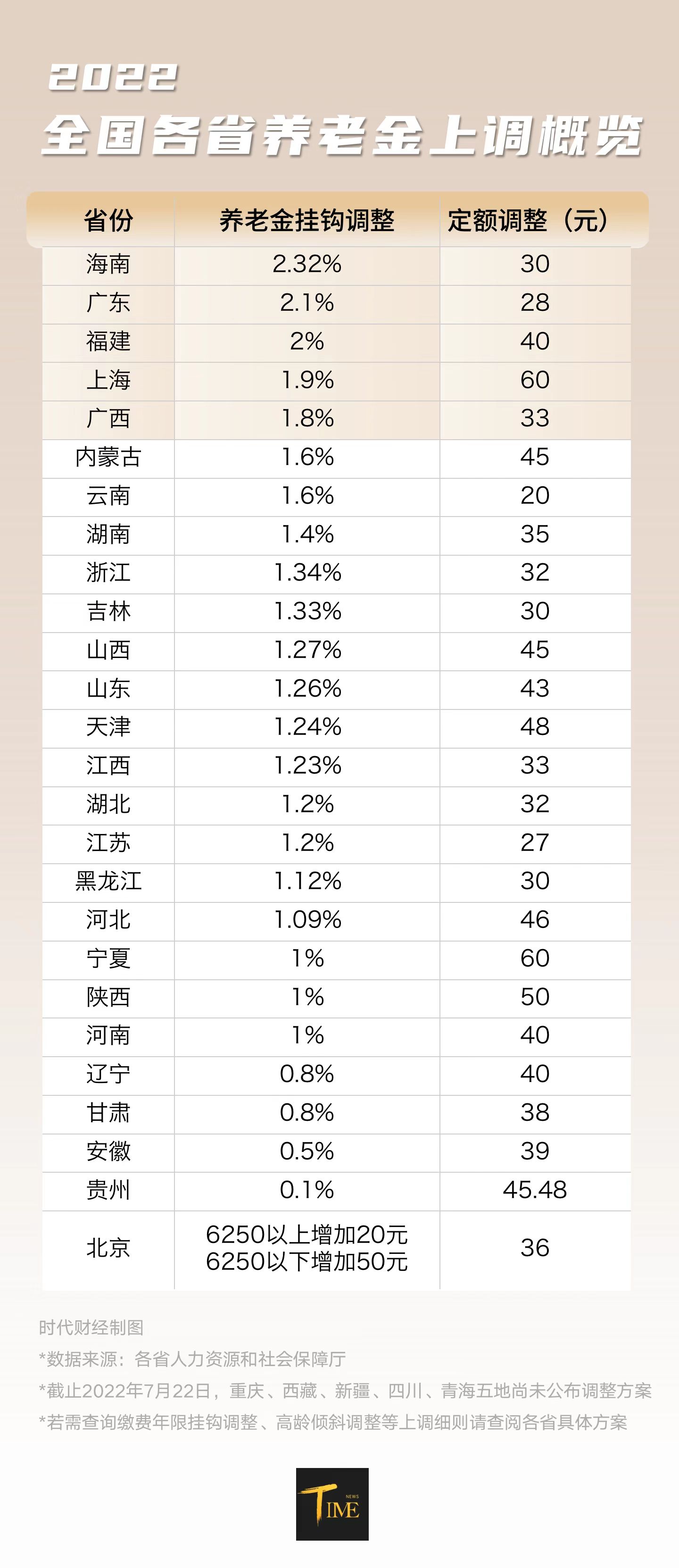 进入7月中下旬,各个省份2022年养老金调整方案陆续公布。