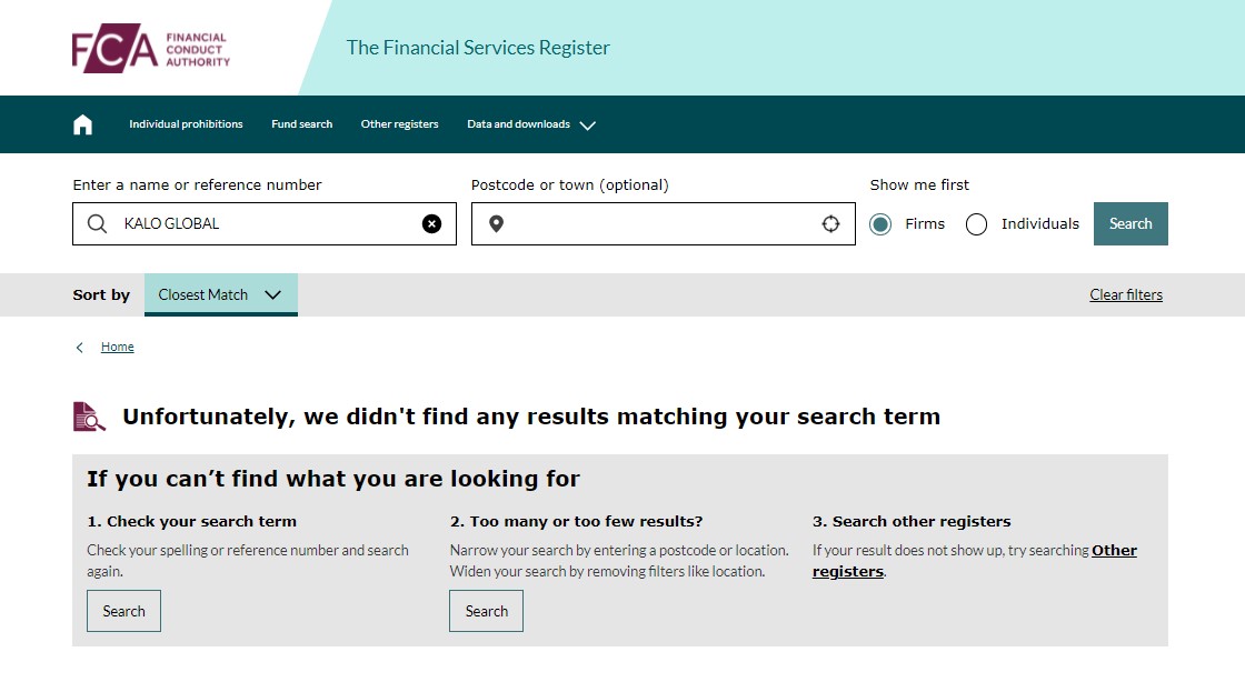 它自称总部在英国,但在英国的工商网和金融行为监管局FCA都没有查到KALO GLOBAL LIMITED的任何信息,可见,其总部在英国却也未受到英国监管。