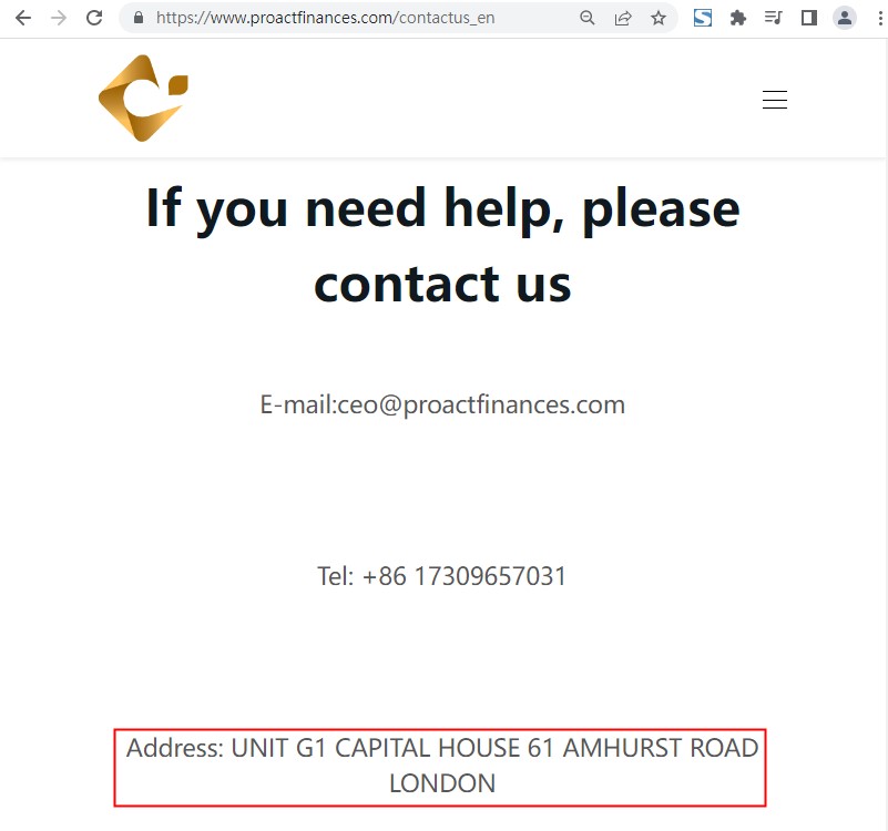 但显然对于金融公司,有工商注册是远远不够的,是否受到金融监管机构的监管才是合规与否的关键。Proact finance Limited显然只是一个没有监管的黑平台,请交易者远离它。